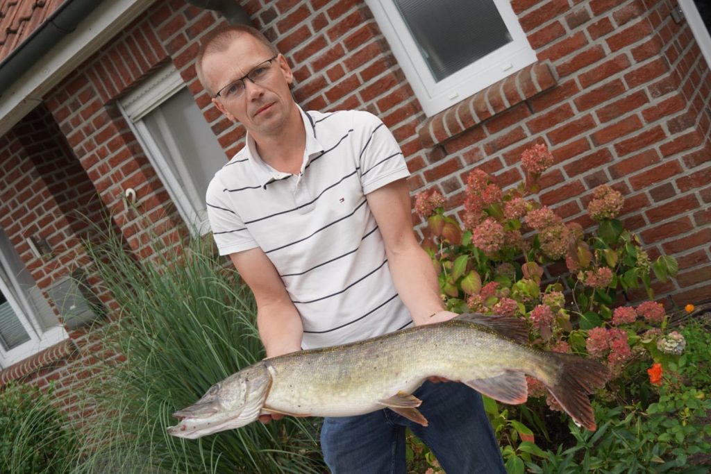 Unser Mitglied Andreas T. hat diesen tollen Esox von 85 cm Länge und 4 Kg auf Spinner im unteren Teil der Delme gefangen. Petri!
