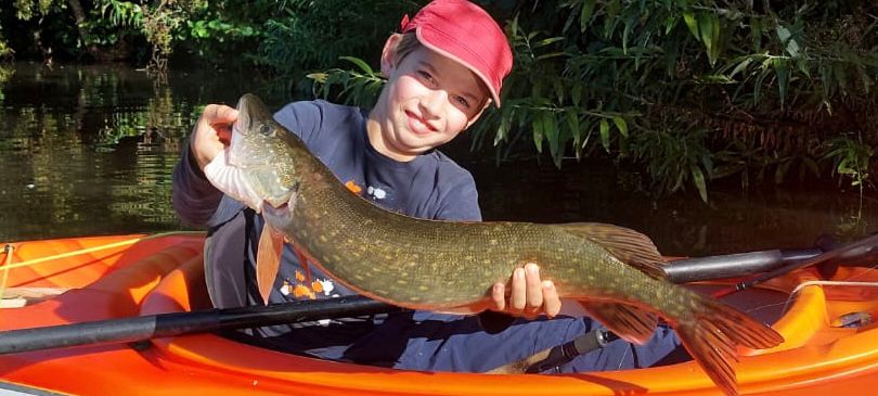 Unser Jugendgruppenmitglied Till T. war am Freitag mit seinem Vater auf der Delme und hat gleich doppelt Erfolg! Zuerst fängt er mit seinem Spinner einen kapitalen Hecht von 73 cm und 2,44 Kg und bei seinen letzten Würfen steigt noch eine schöne Meerforelle von 58 cm ein.